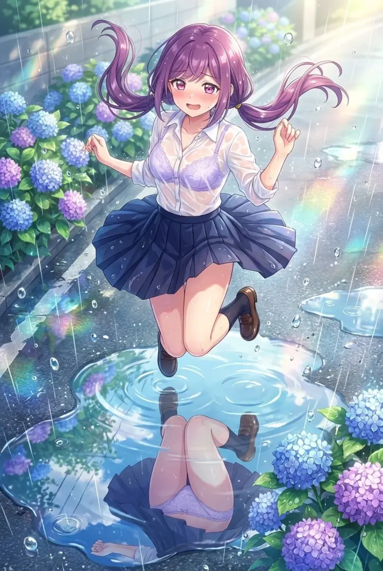 【双見奈々】雨上がりの紫陽花と濡れ透けラン