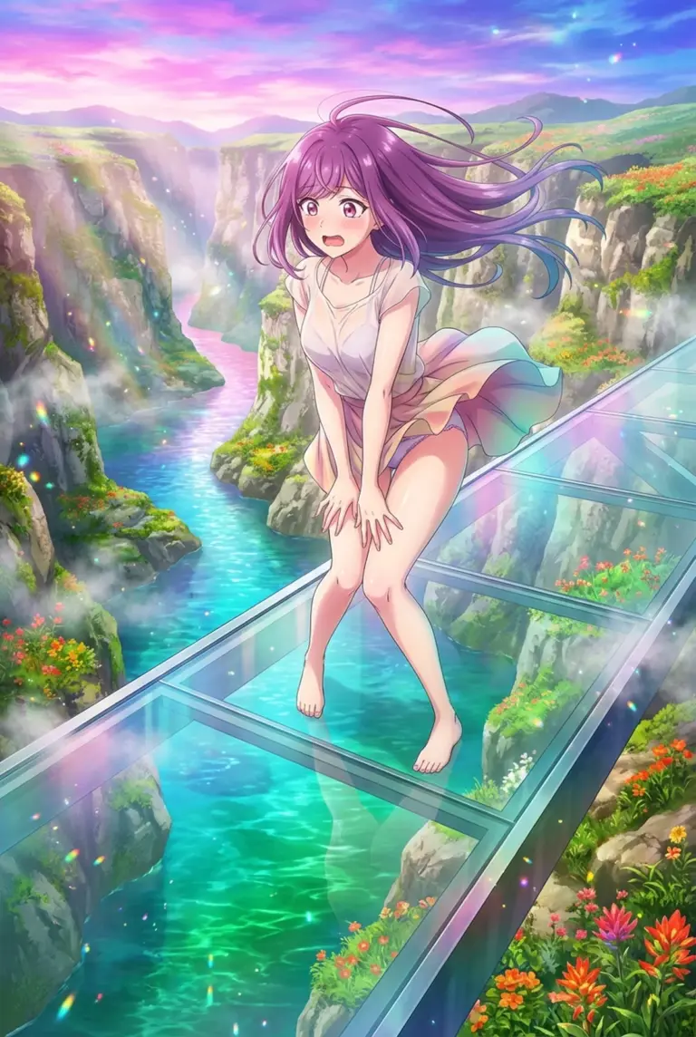 【双見 奈々】風に舞うスカート、空中の散歩道でドキドキ